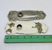 Antique 1930s San Francisco Victorian Estate Metal Door Knob Back Plate Set T1