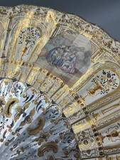 Antique 19th c. Chinese Export Fan w/ Two Sides Painting in Wood Frame 21″