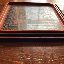 Antique 19th Century Burmese Lacquer Trays Set of 3 Yun Technique Orange Black