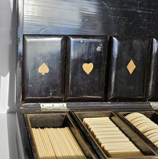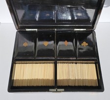 Antique 19th Century Lacquered Game Box 241 Counters Sticks Discs -See Details-
