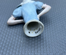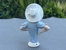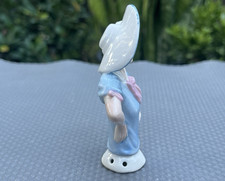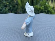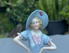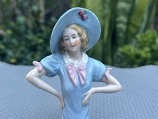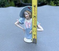 Antique 4 ” Porcelain Half Doll Pincushion #15466 Blue Blouse & Hat