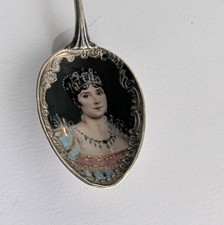 Antique 800 Silver Enamel Queen Spoon Eagle Top Josephine Signed 4.75″ Tall