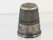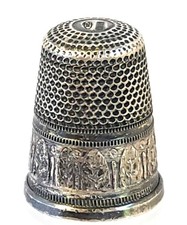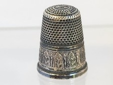 Antique 800 Sterling Silver Firenze Italy Thimble Banded Leaf Design