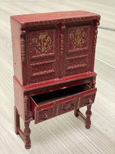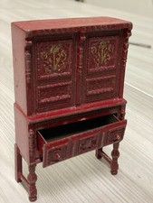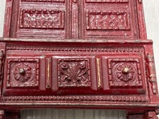 Antique Arcade Cast Iron Dollhouse Dining Room Hutch, 1920s Toy, Red