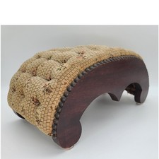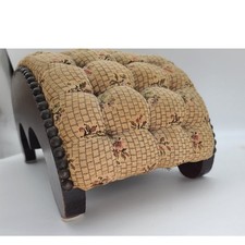 Antique Arched Wood Upholstered Tuft Durable Fabric Footstool Nail Head Detail