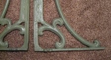ANTIQUE ARCHITECTURAL SALVAGE GREEN PAINTED SHELF SINK BRACKETS 16″ X 10″