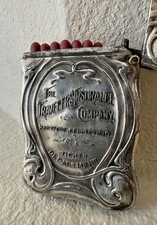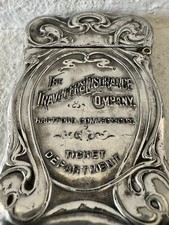 Antique Art Nouveau Travelers Insurance Company Match/Vesta Case Silver 2.5” HTF