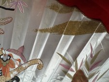 Antique Asian Mother of Pearl Hand Painted Silk Professionally Framed Hand Fan
