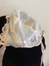 Antique Baby Bonnet Cap White Cotton & Lace Pink Satin Ribbons