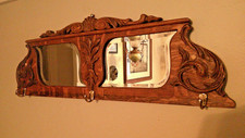 Antique Beveled Glass Mirror Hand Carved Wood Frame Anodized Gothic 30″ long