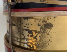 Antique British Military Snare Drum Marching 14″ by 7.5″ Tall Hawkes Brass Sign