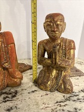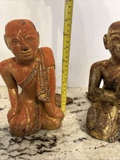 Antique Burmese Gilded and Lacquered Wooden Figures of Buddhist Monks. 19th C