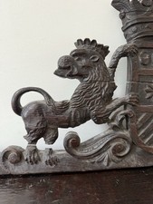 Antique Carved Oak Door Pediment With Coat Of Arms Family Crest Lions Crowns