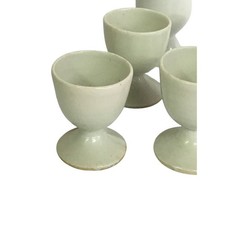 Antique Ceramic Ironstone Pottery Egg Cups 6 Pc White Farmhouse Kitchen