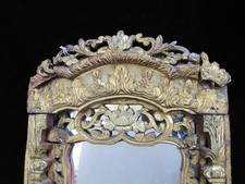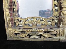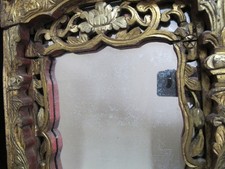 Antique CHINESE Carved Lotus FLOWER Gilt Wood Wall Hanging MIRROR