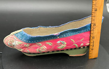 Antique Chinese Embroidered Silk Lotus Shoes Foot Binding Wood Sole Shoes