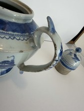 Antique Chinese Export Blue White Canton Domed Top Teapot