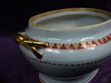 Antique Chinese export porcelain tureen gold gilt marked “ABG” hunting dog
