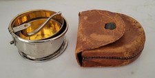 Antique Collapsible Silver Plated Travel Cup /w Original Leather Case GERMANY