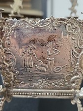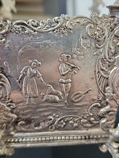 Be the first to review “Antique Dutch Export Silver Jardinière Rococo Lion Finials Repoussé Scenes 150g”