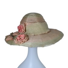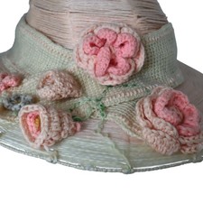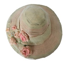Be the first to review “Antique Edwardian Mohair Yarn Knit Sun Hat Crochet Flower Applique 1910s”