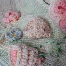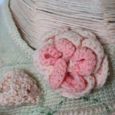 Antique Edwardian Mohair Yarn Knit Sun Hat Crochet Flower Applique 1910s
