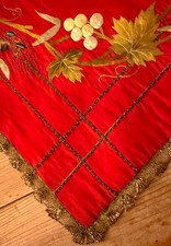 Antique Embroidery Silk Piece w/ Metallic Lace Mother Swan Feeding Babies ZZ761