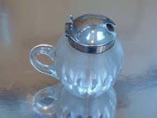 Antique English Condiment Pot- Silver Mount and silver spoon