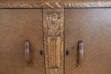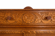 Antique English Tiger Oak Sideboard Hand-Carved Floral Details, Arts & Crafts