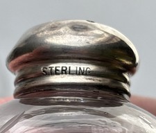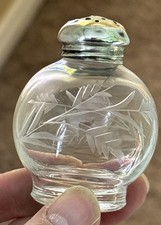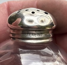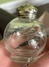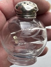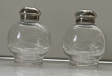 Antique Etched Crystal Globe Glass Sterling Silver Tops Salt & Pepper Shakers