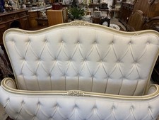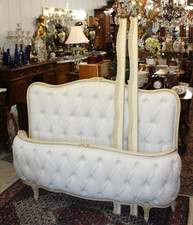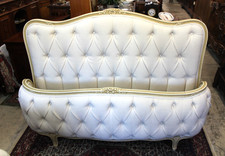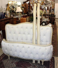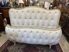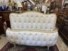 Antique French Louis XV Full Size Bed New White Lenin Tufted Upholstered