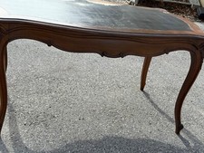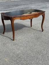 antique French Victorian Louis XV writing table walnut country leather 1900s