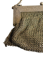 Antique German Silver Chain Mail Link Flapper Metal Mesh Bag Purse