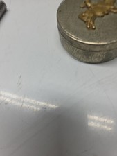 Be the first to review “Antique German Silver Round Pill Snuff Box With Bull Figure Lid And Monogram” Cancel reply
