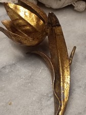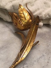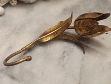 Antique Gilt Metal Floral Wall Hook Tulip Form Decorative Hat Hook c1900