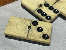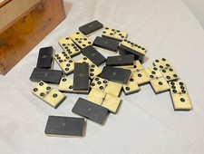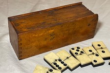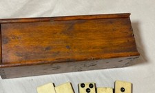 Antique handmade 19th century bone ebony wood dominoes game set dovetailed box