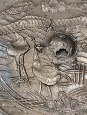 Antique Japan bronze mirror Kagami XVIII C. lost wax craft sculptur