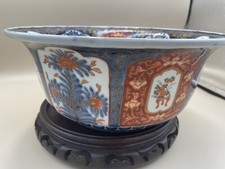 Be the first to review “Antique Japan Hand Painted IMARI Signed Large Porcelain Bowl 11” Rosewood Stand”