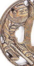 Antique Japanese Brass Signed Tsuba Kagamishi Mirror Maker Shoki Oni Demon Old
