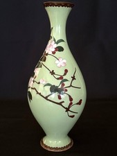 Antique Japanese Cloisonné Enamel Vase – Bird & Blossoming Branch Design 11.5 “