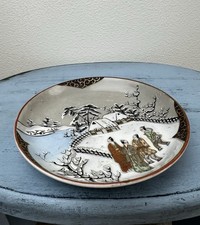 Antique Japanese Kutani-ware Hand-painted Small Plate Dish Snowy Winter Scene