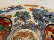 Antique Japanese Large Imari Porcelain Bowl w/ Figures & Dragon Decoration