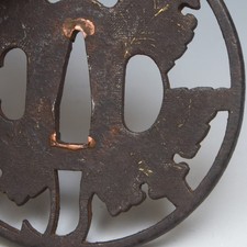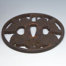 Antique Japanese Tsuba sword guard metal hand carved collectible ♯52