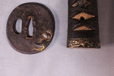 Antique Japanese Wakizashi Mounting with Ornate Tsuba and Tsuka