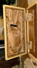 Be the first to review “Antique Jewelry Box Engraved Angel Celluloid Wrapped Wood 9x 3.75 Oval Quite Old”