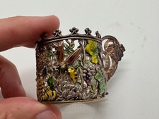 Antique Likely Silver & Enamel Insect Flower Dec Liquor Cordial Glass Cup Holder