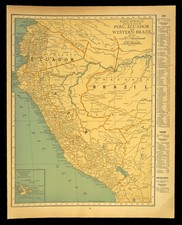 Antique Map of PERU Wall Art Ecuador Map South America Vintage Original 1920s