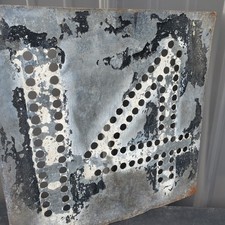 Antique Metal # 14 Sign Vintage Cutout Vintage Industrial Folk Decor Perforated