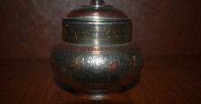 Antique Middle East Copper Silver Tone Sugar Bowl Lid , Floral Design (H)