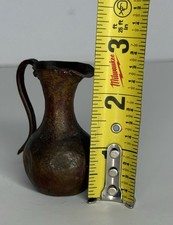 Antique Mini Doll House Hand Hammered Artisanal Rustic Copper Pitcher Riveted